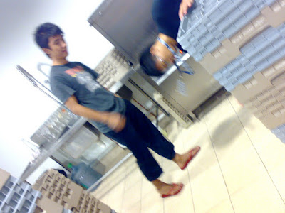 Funny Face. Bangal* likes to work under poor condition with his slippers.