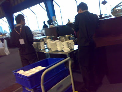 The group of guys was doing stewarding in th kitchen.